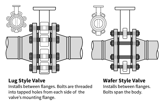 Resilient Seated Butterfly Valve Lug type,is usually used where the valve is at the end of the pipe since there is no 2nd flange to secure the studs. Instead, lugs are cast on the valve with tapped holes which matches the bolt pattern for the size and pressure classification of the flange. Bolts are passed through the flange holes and are threaded into tapped holes of the lug.